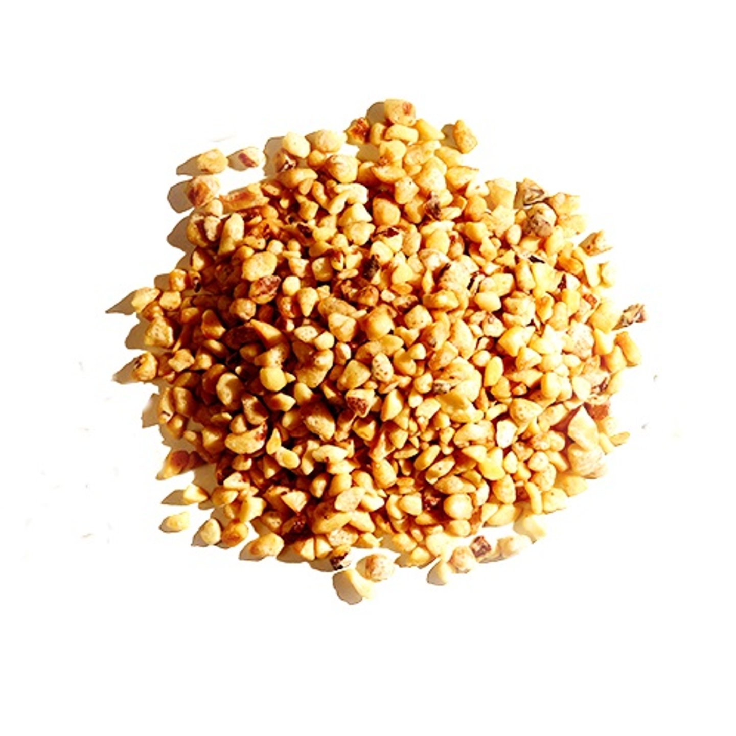 - Drobné kousky křupavých lískových oříšků obalených v karamelu.