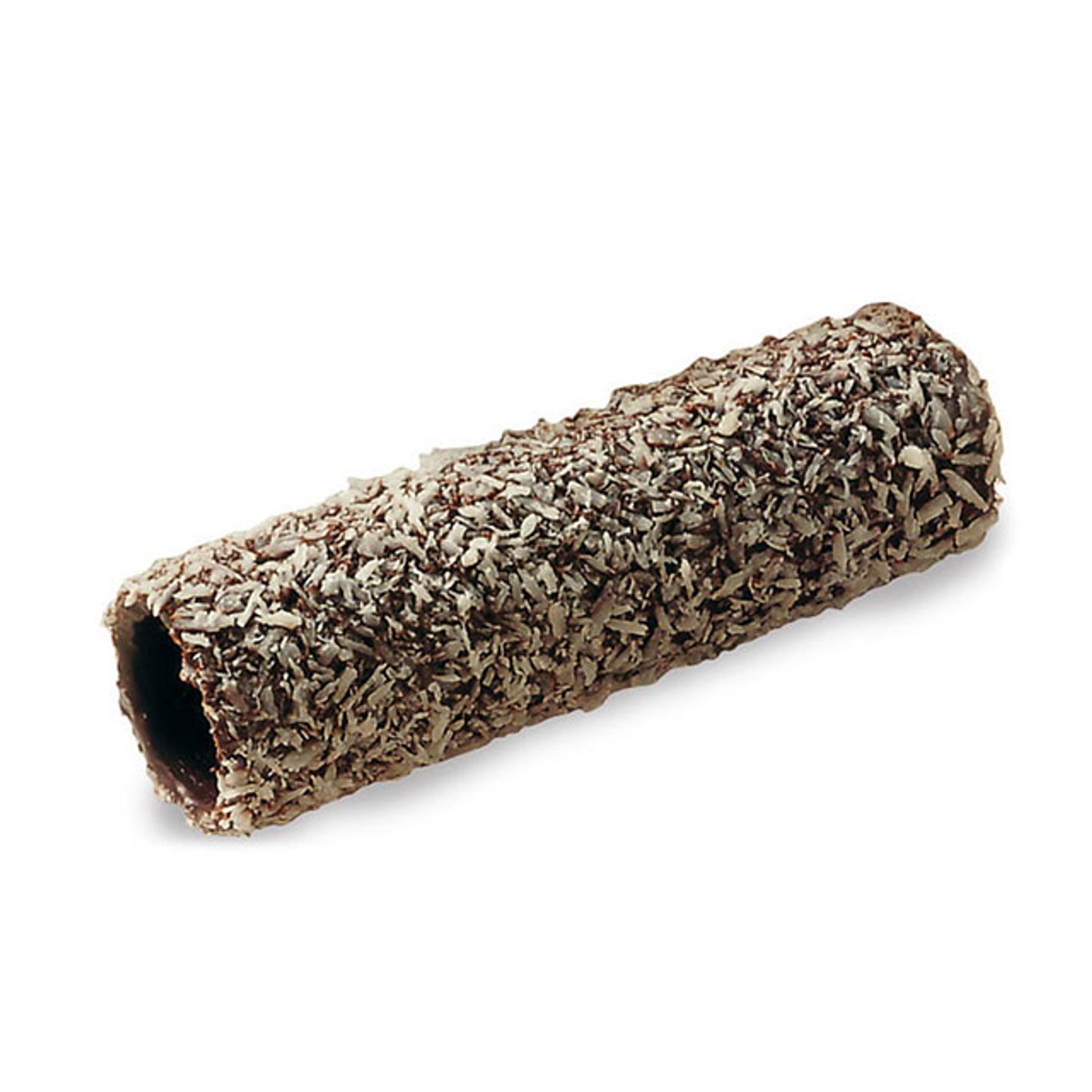 Vaflová trubička v kakaové polevě s kokosovými křupinkami.