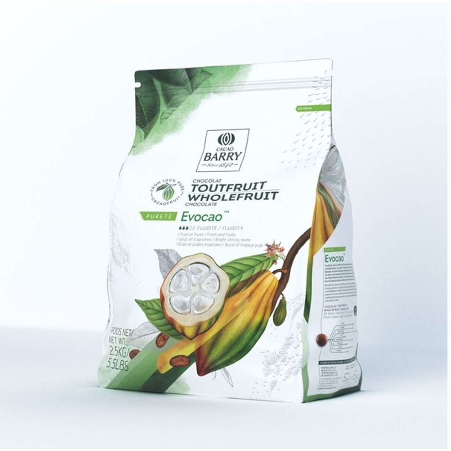 Čokoláda Evocao™ WholeFruit, vyrobená ze 100% čistého kakaofruitu, poskytuje revoluční svěží a ovocný zážitek. Jeho jasně citrusově pikantní charakteristickou chuť doplňuje to, co se vyznačuje Evocao: tropická ovocnost překypující čerstvým mangem, citronem, mandarinkou, mučenkou a dužinou kakaovníku.