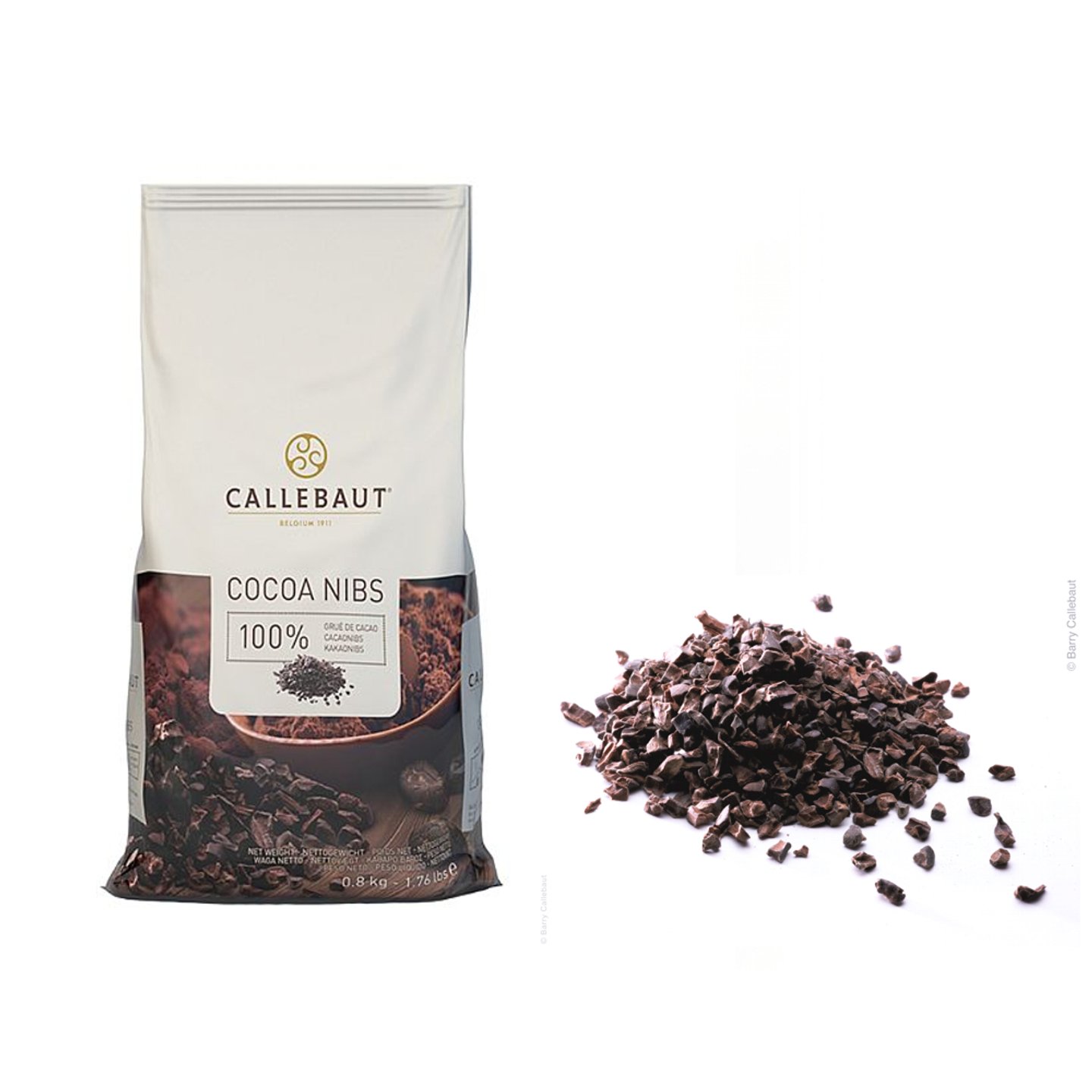 Drcené kakaové boby vhodné pro použití v cukrářské výrobě.