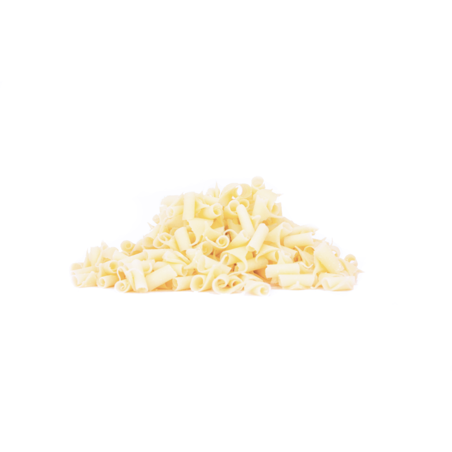 - Dekorační světle žluté mikro hoblinky z belgické bílé čokolády.