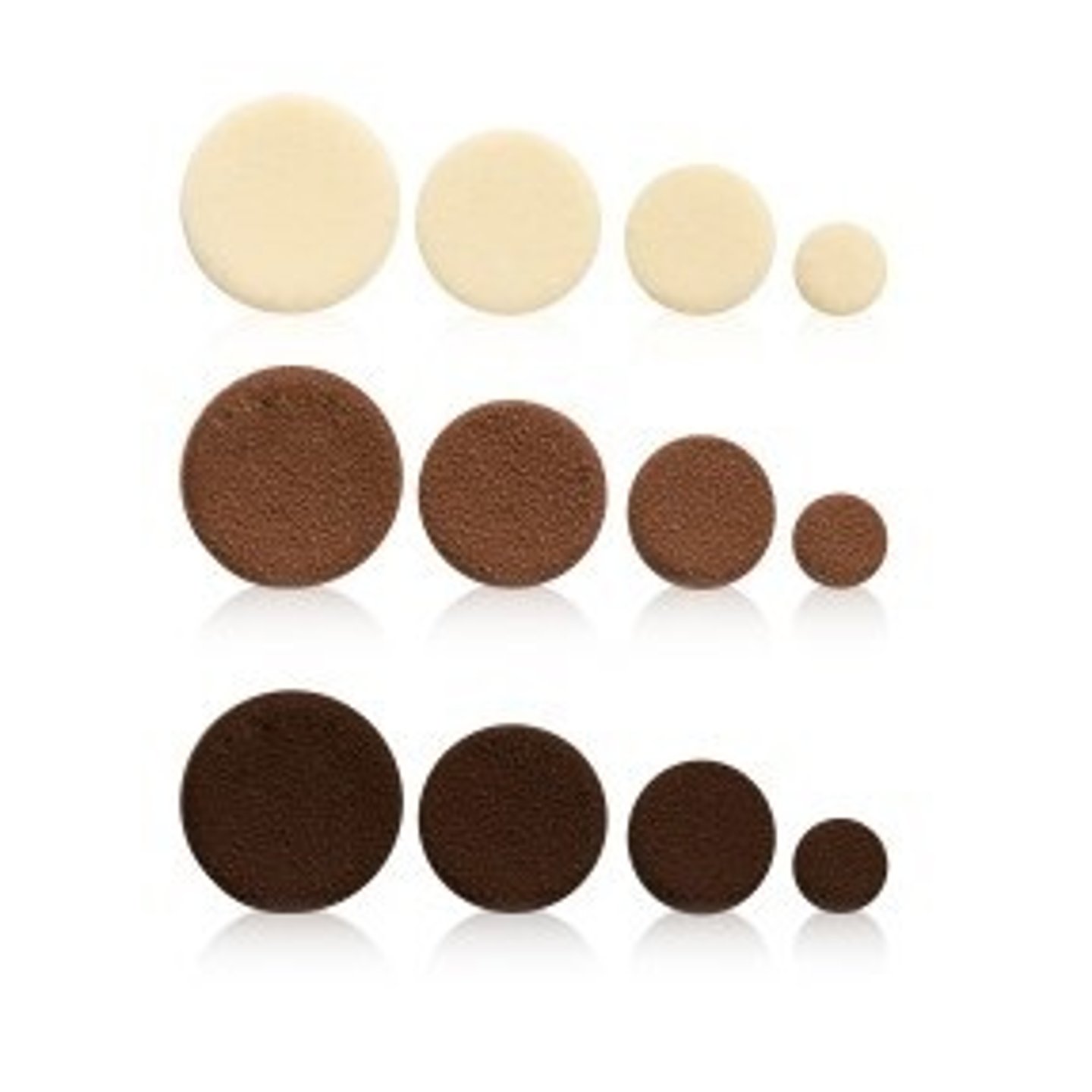 Čokoládové dekory ve tvaru koleček z hořké, mléčné a bílé čokolády.