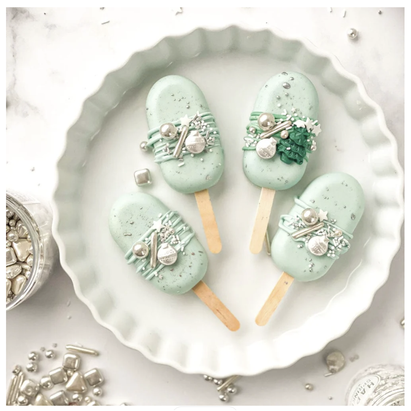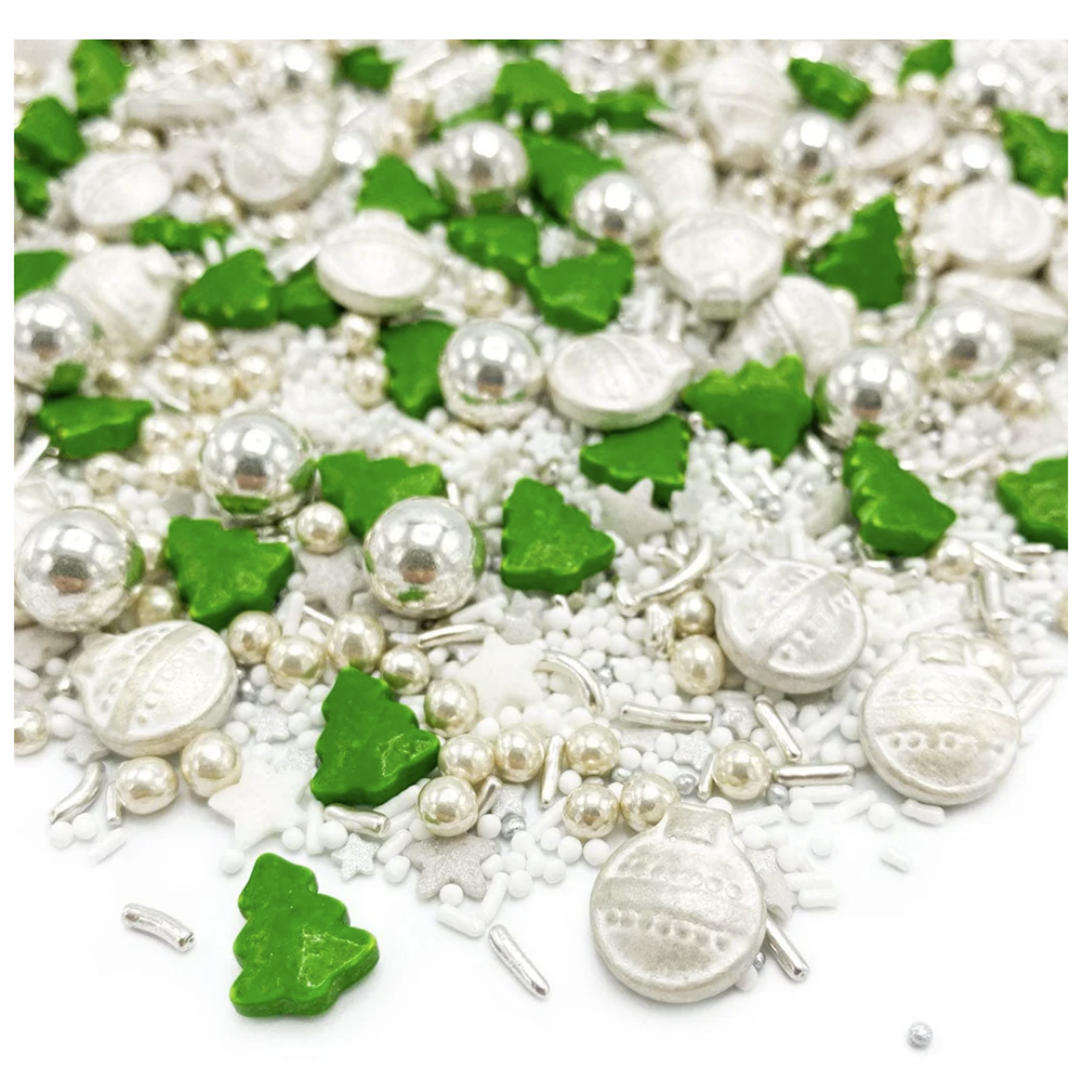 Štědrý večer může přijít! Různé odstíny stříbrné v cukrových perličkách, hvězdičkách a posypu opravdu září a tvoří dokonalý, elegantní základ pro malé vánoční ozdoby a odpovídající zelené vánoční stromečky. Sen ve stříbrné, bílé a zelené barvě je ideální pro každého, kdo chce své vánoční pečení udělat elegantnější - možnosti pečení a zdobení jsou nekonečné.