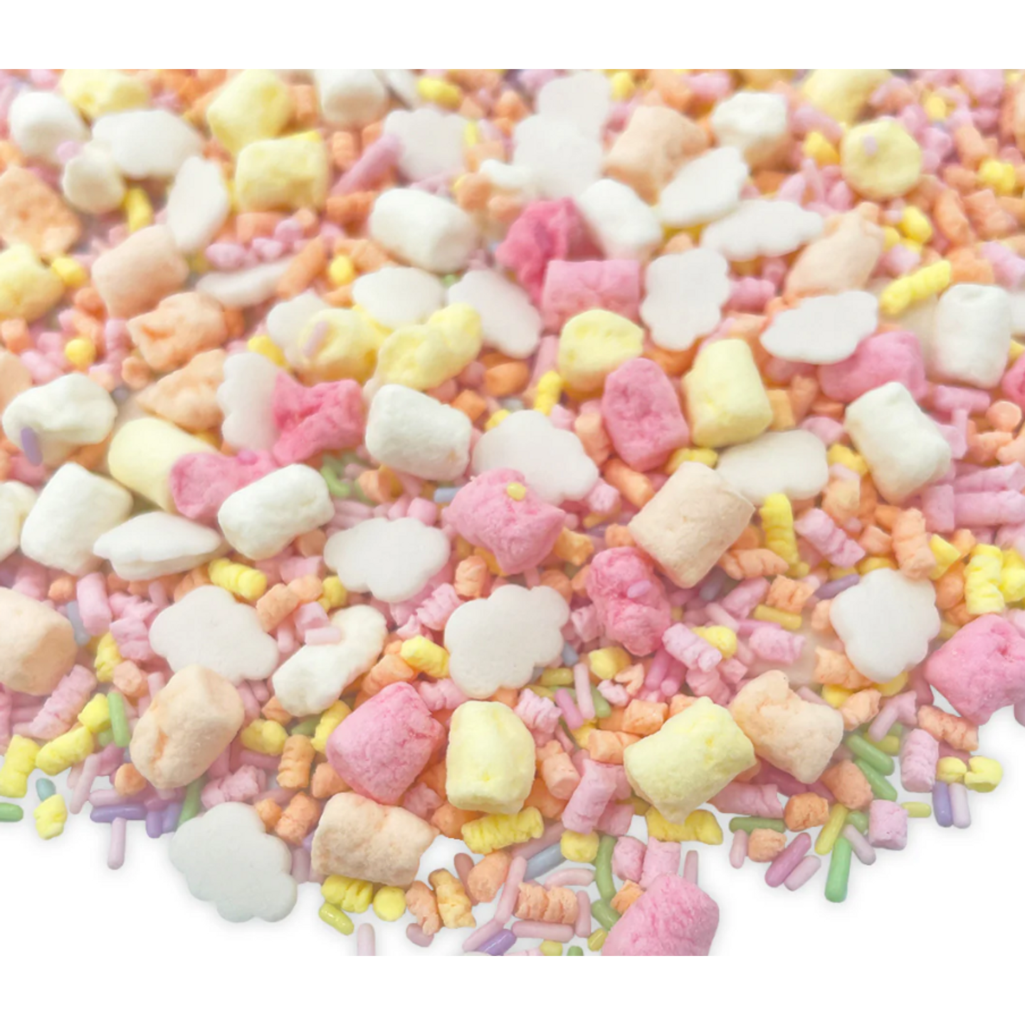 Rozplývající se marshmallow, které se na jazyku rozplývají jako obláčky. Barevné cukrové posypky, které vytvářejí barevná překvapení v každém koutku vašeho mléčného koktejlu. A nebeské motivy obláčků, které promění vaši sklenici v umělecké dílo.