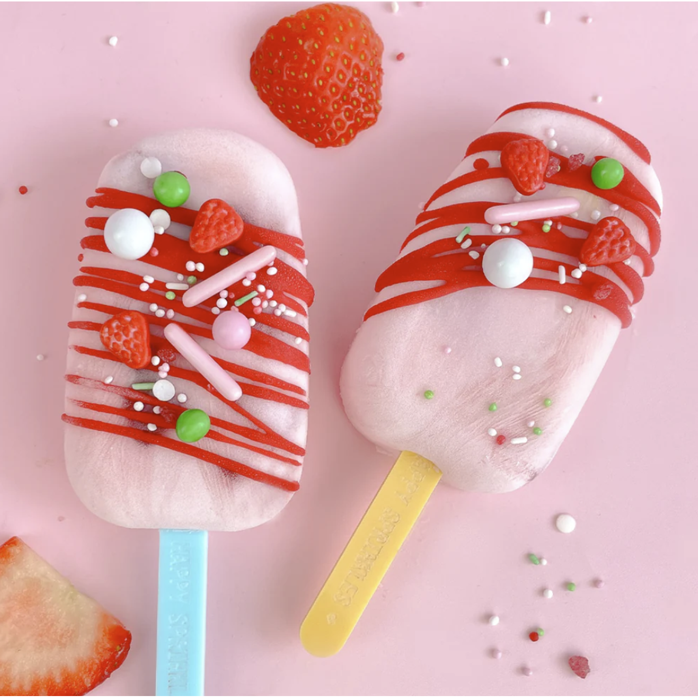 S růžovými, bílými a zelenými čokoládovými perlami, malými jahodami, růžovými růžičkami a lahodnou jahodovou křupinkou se směs Strawberry Sprinkles postará o dobrou náladu a ovocné výtvory.