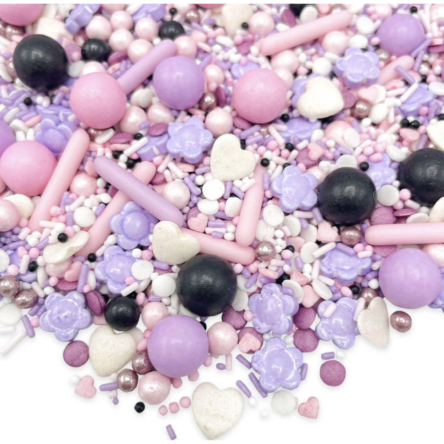 Tato směs je skutečným vyznáním lásky k borůvkám. Směs naplněná černými, fialovými a růžovými čokoládovými kuličkami, základem z bílého, černého a růžového posypu a zjemněná fialovými a bílými konfetami připomíná lahodnou borůvkovou pěnu posypanou čerstvými borůvkami a chutnými čokoládovými kuličkami. Zvláštní chuť Very Blueberry dodávají fialové květy, bílá srdíčka a třpytivé malé čokoládové perly.