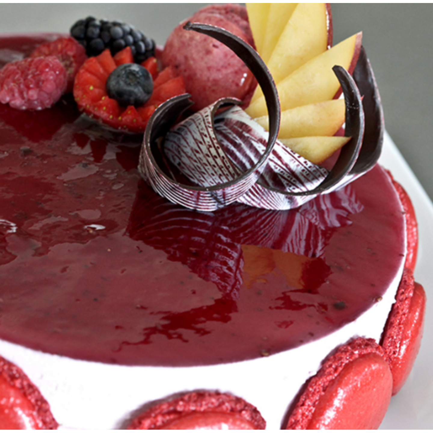 Glazé poleva s vysokým leskem červené barvy a chuti lesních plodů.