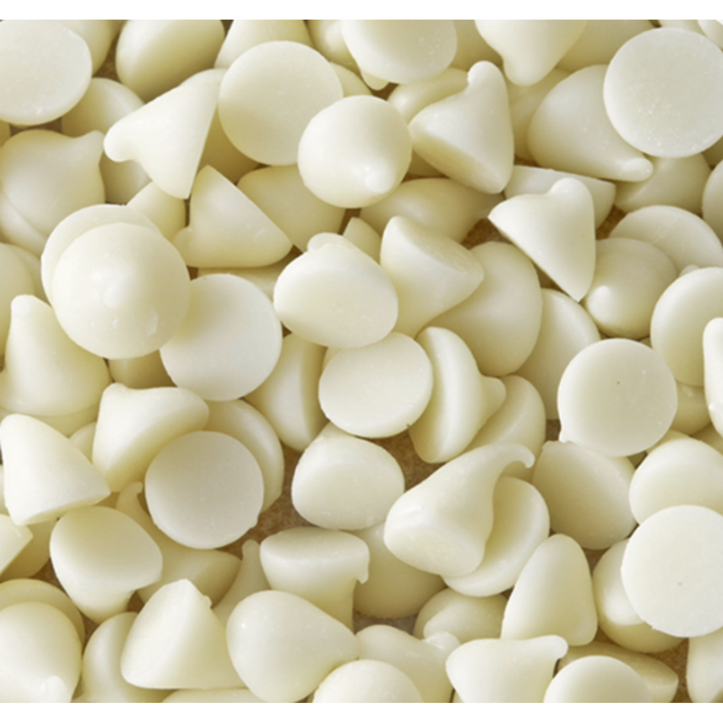 Kousky bílé polevy v peckách vhodné k přidání do těsta.