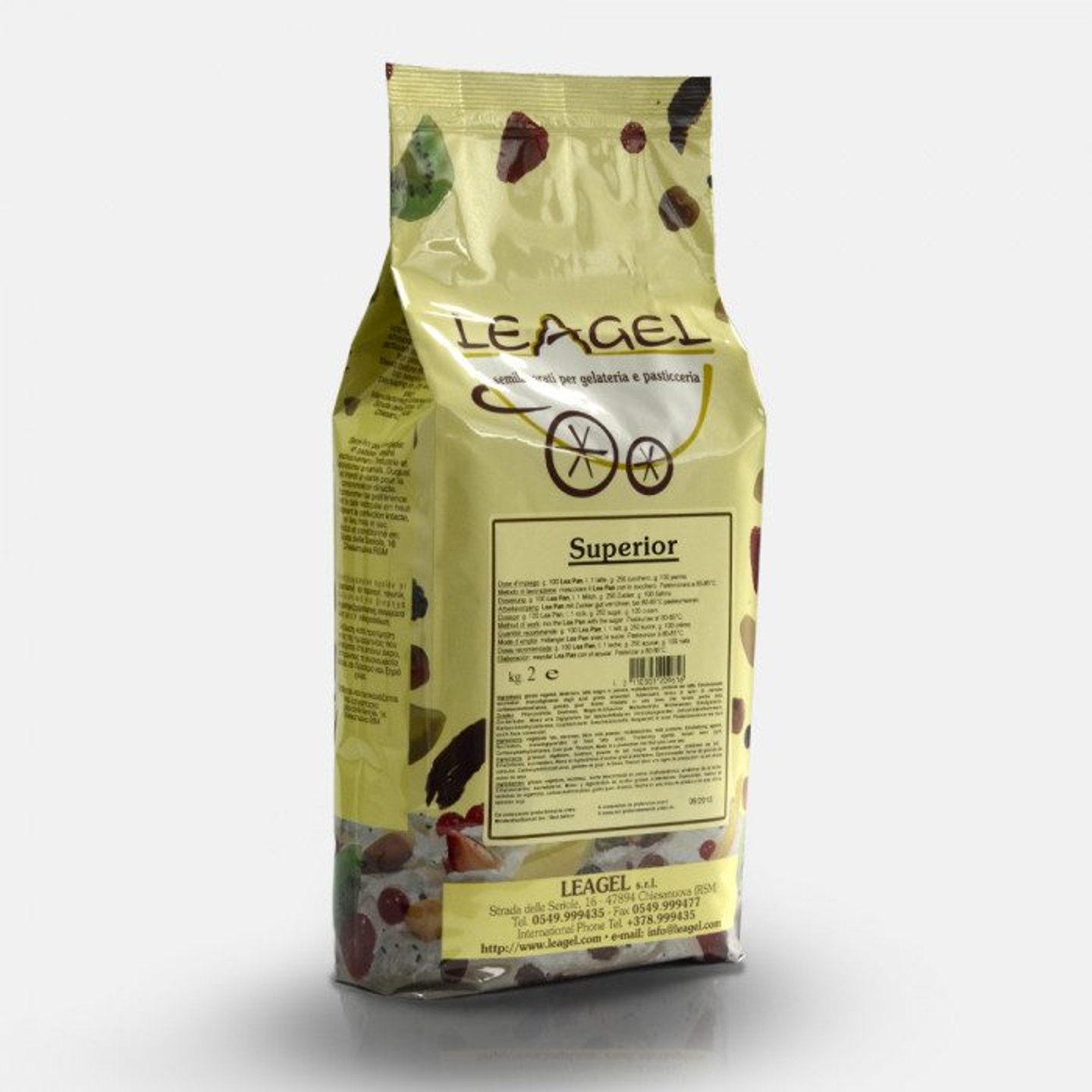 Superior 100 je nejnovější základ vyvinutý společností Leagel, ideální pro zmrzlináře, kteří chtějí krémovou zmrzlinu příjemně hřející na jazyku,a která vynikne ve vitríně. Základ Superior 100 je ideální jak pro horký, tak pro studený proces: obsahuje výhradně rostlinné tuky na bázi kokosu a mimořádně ušlechtilá zahušťovadla, jako je guma Tara. Superior Base 100 je ochucen vybranými přírodními aromaty a umožňuje zmrzlináři připravit vynikající bílý základ s vyváženou a obzvláště příjemnou chutí.