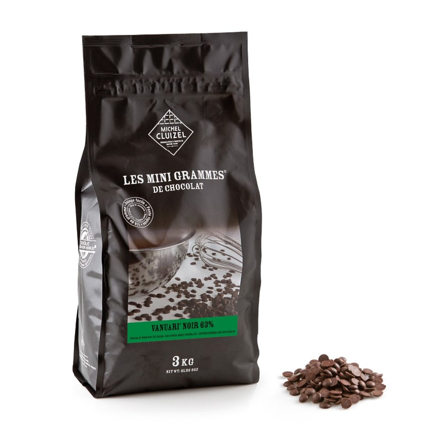 Čokoláda je ve formě malých praktických peciček pro snadné použití v cukrářské a zmrzlinářské výrobě.