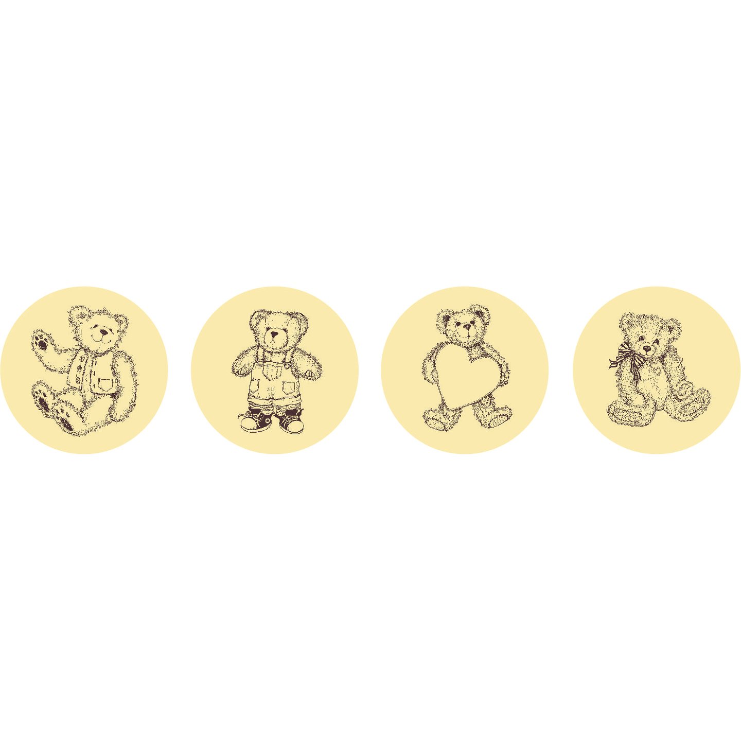 Dekor na bílé čokoládě ve tvaru kolečka s motivem medvídků, je připravený k použití.