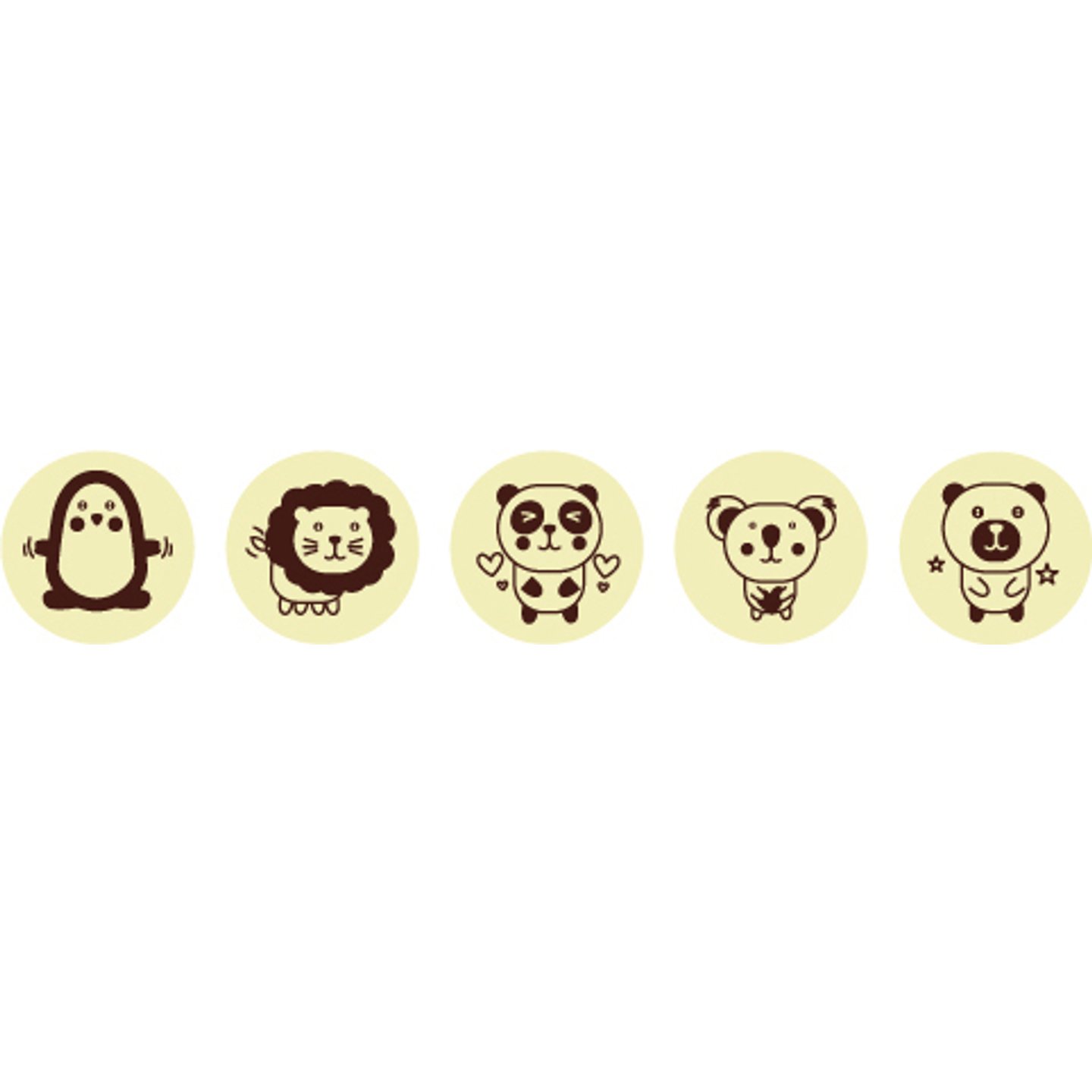 Motivy zvířátek - tučňák, lev, panda, koala, medvídek.
