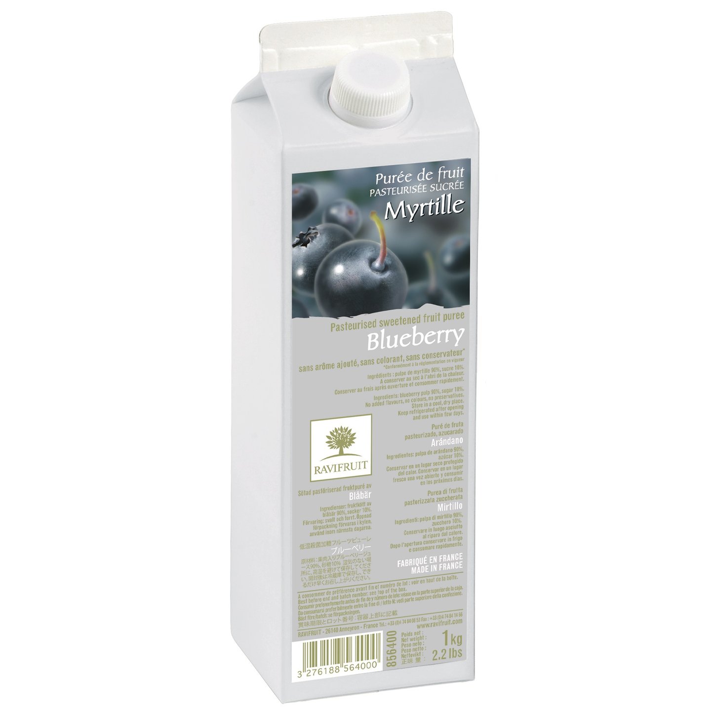 Pasterizované pyré Borůvka obsahuje 90% borůvkové dřeně a 10% cukru.
